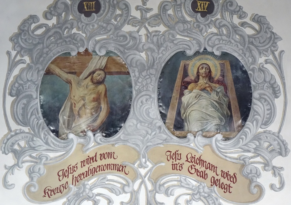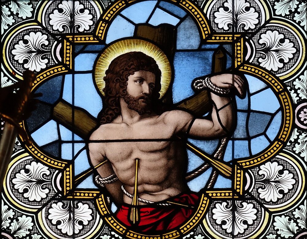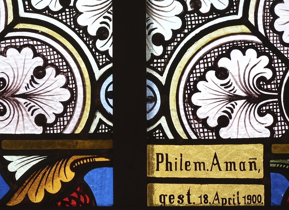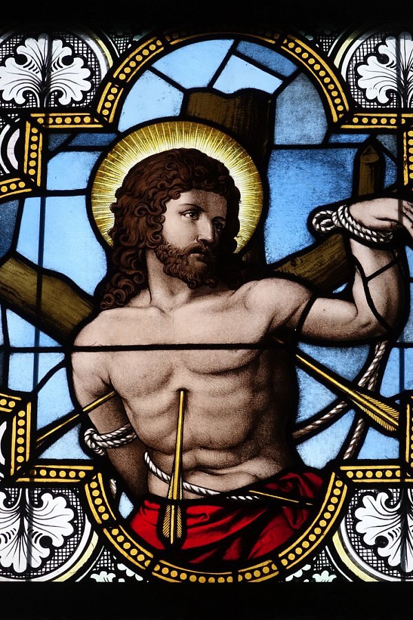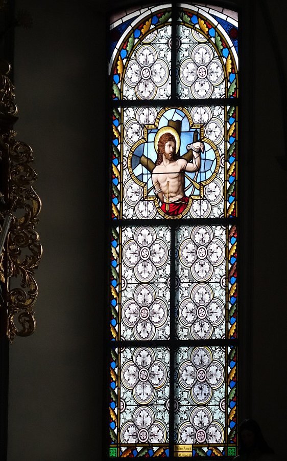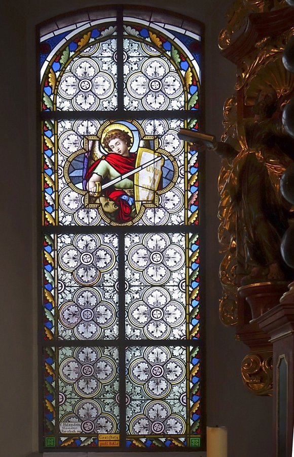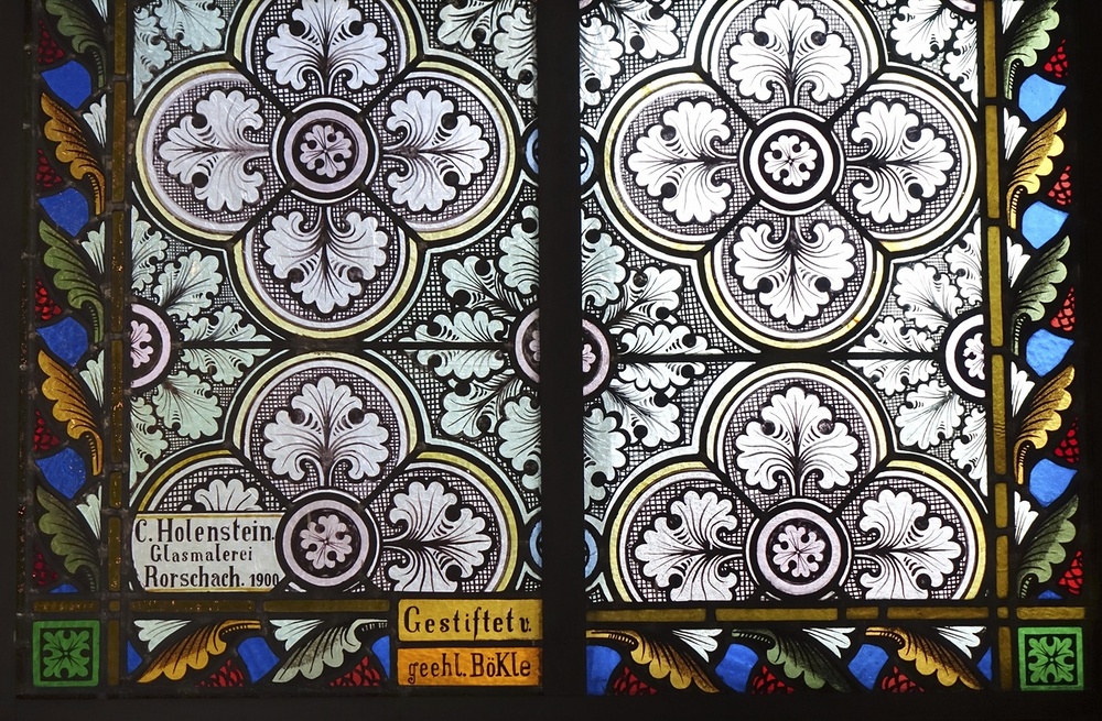 Glasmalereien im Chor links hl. Sebastian, rechts hl. Michael, bez. C. Holenstein Glasmalerei Rorschach 1900