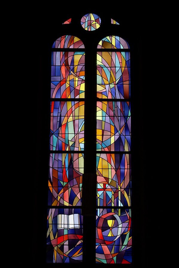 im 4. Joch, im Altarraum und über der Orgel nach Entwürfen von Willi Buck, 1970 -1972