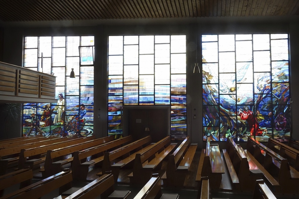 Glasgemälde von Hans Strobl, Ausführung Tiroler Glasmalereianstalt, Innsbruck