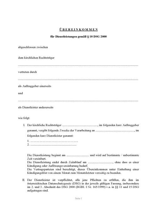 Datenschutz - Dienstleisterübereinkommen
