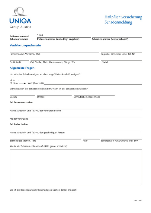 Pfarrservice - Schadenmeldung Haftpflicht UNIQA